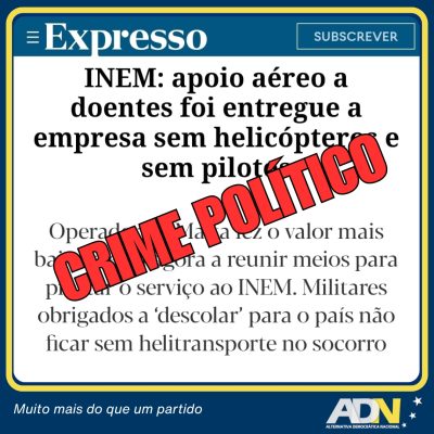 HELITRANSPORTE DE EMERGÊNCIA MÉDICA: UM ESCÂNDALO NACIONAL UM CRIME POLÍTICO Lisboa, 6 de Julho de 2025 – O Partido Alternativa Democrática Nacional (ADN) exige a
